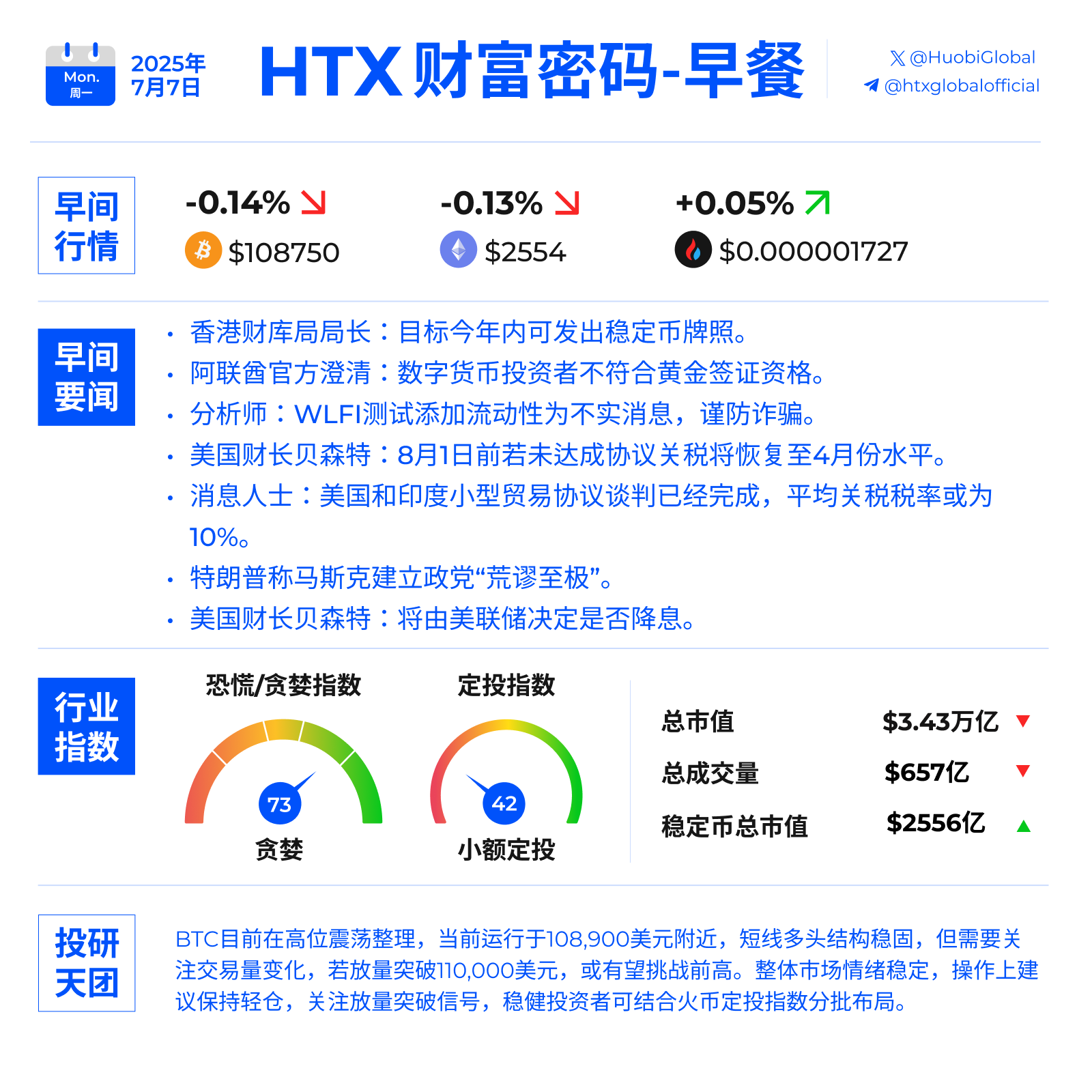 今日市场动态亮点:8月1日前若未达成协议关税将恢复至4月份水平;香港目标今年内可发出稳定币牌照。