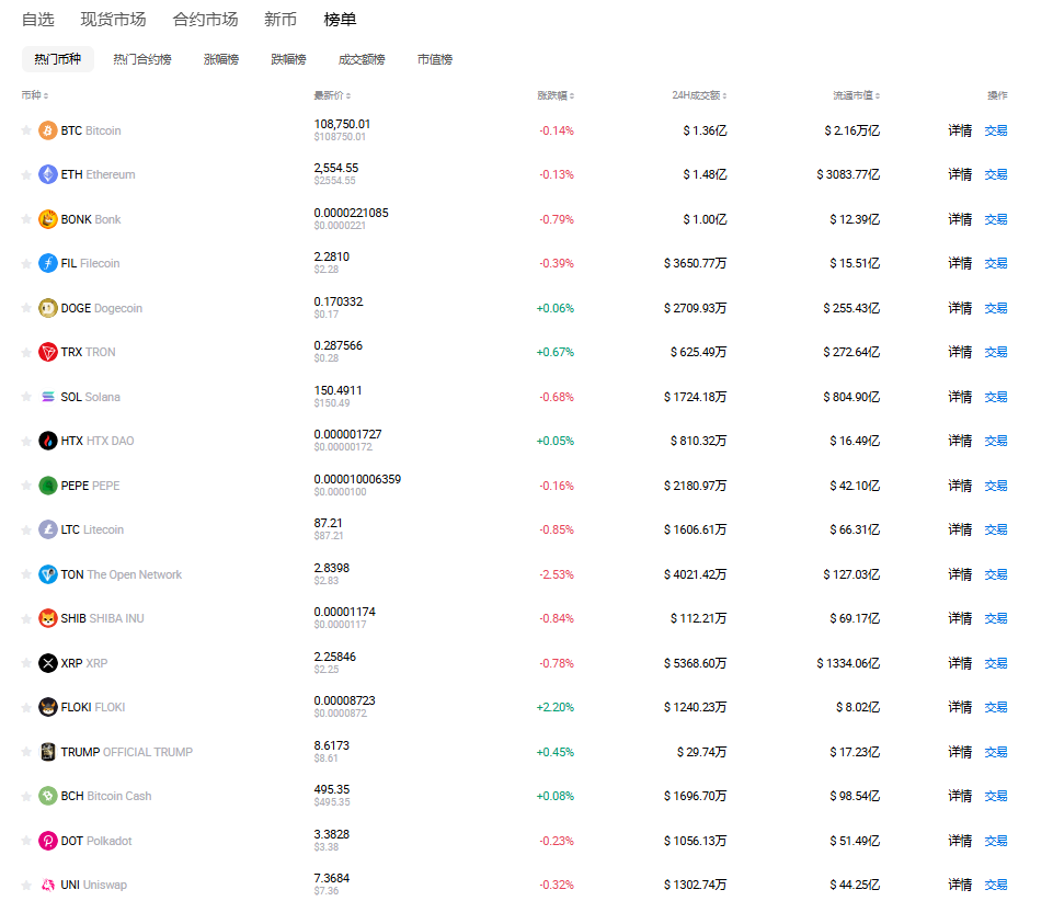加密市场:比特币现报108750美元。ETH价格为2554美元,HTX目前价格0.000001727美元。