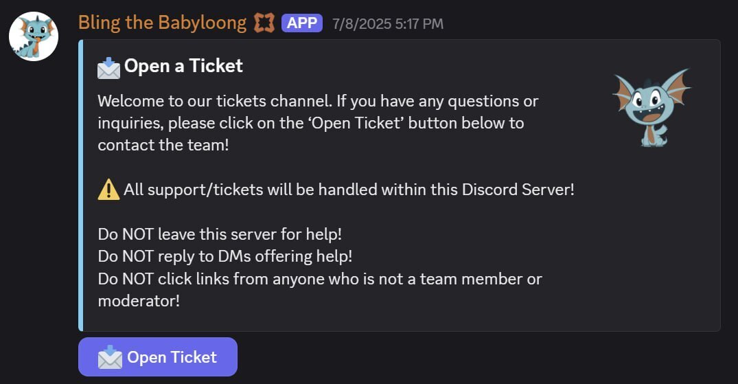 巴比伦 Discord 工单系统现已上线并经过实战测试!自上周三以来,我们的管理员已解决了 30 多个工单,毫无问题。有问题或反馈?快来服务器并提交工单 👇