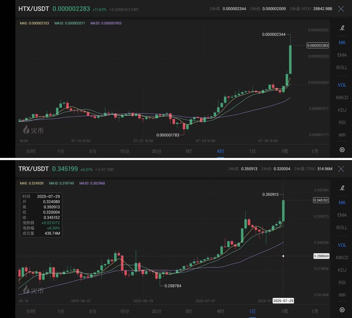 这就解释了:为什么 $HTX 和 $TRX 会在时候异动。