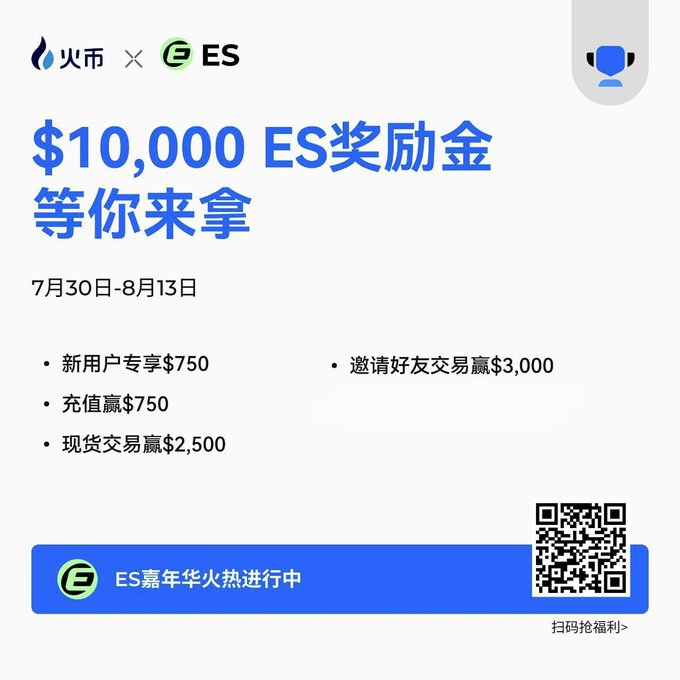 🧨 宝子们,$ES 嘉年华火爆开场!🔥 火币 HTX 豪撒 $10,000 ES 福利!