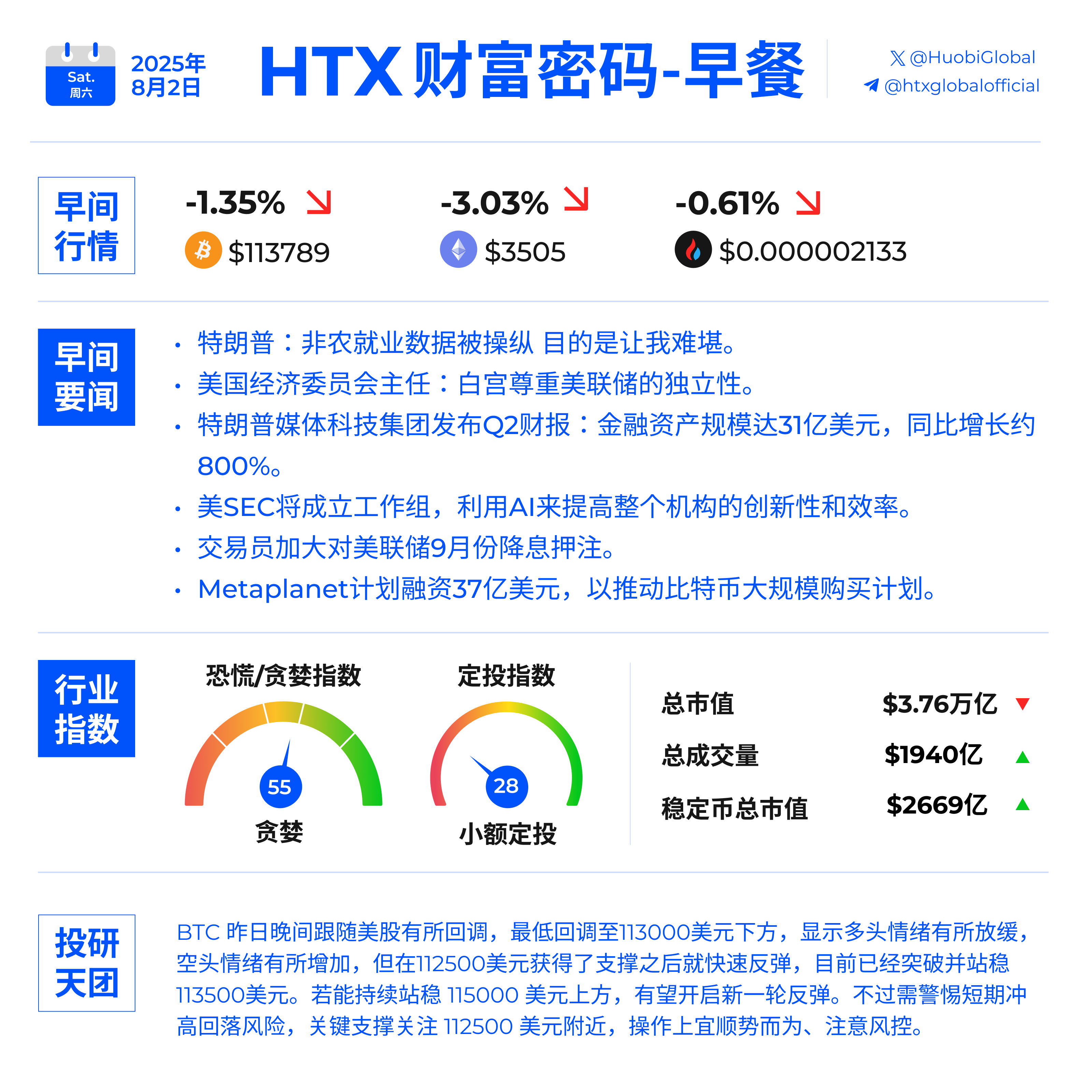 今日市场动态亮点:特朗普:非农就业数据被操纵,目的是让我难堪。美国经济委员会主任:白宫尊重美联储的独立性。