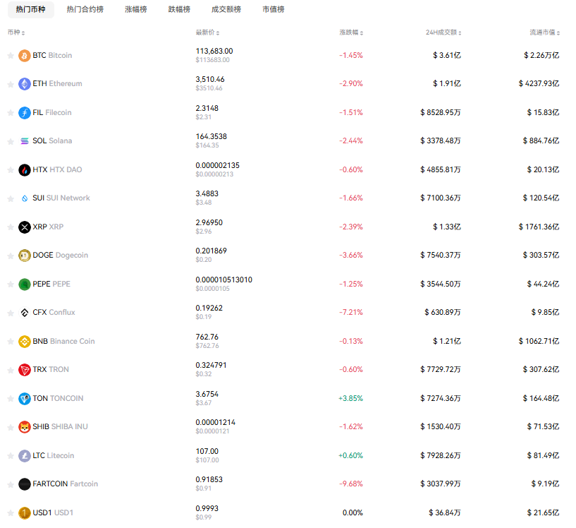 加密市场:比特币现报113683美元。ETH价格为3510美元,HTX目前价格0.000002135美元。
