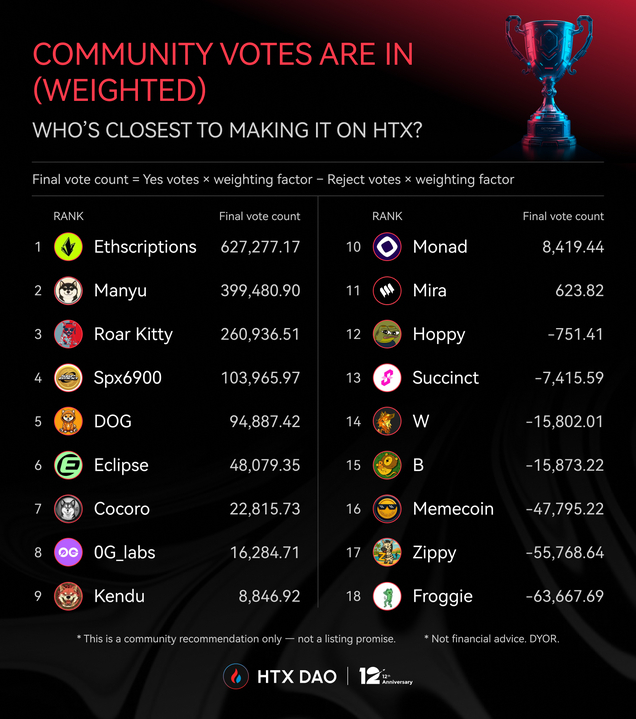 🏆 HTX DAO 上市投票结果(更新及加权)