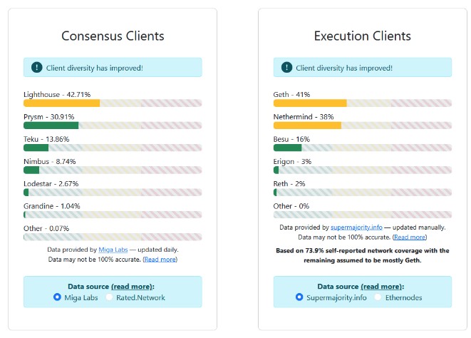 以太坊目前有五个主要的软件客户端可用于运行网络,这意味着即便某个客户端出现问题,网络也不会像 Solana 那样直接停摆。