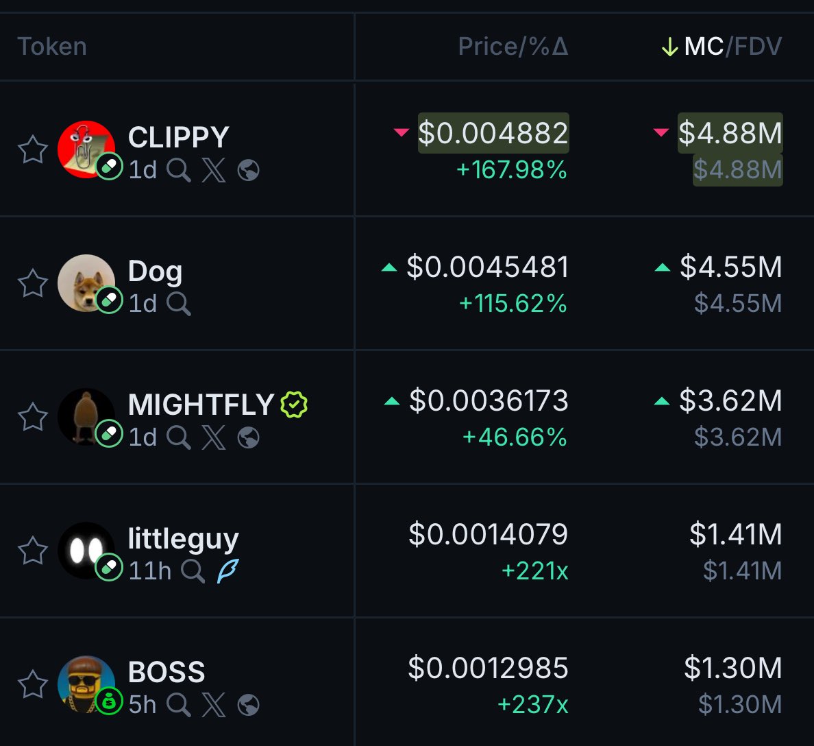 28,300 coins launched today which 350 (1.23%) graduated.Based on Jup data, there were 5 daily runners which 4 of them from pumpfun and 1 from bags launch-pad.$clippy, $dog, $mightfly, $littleguy and $Boss.