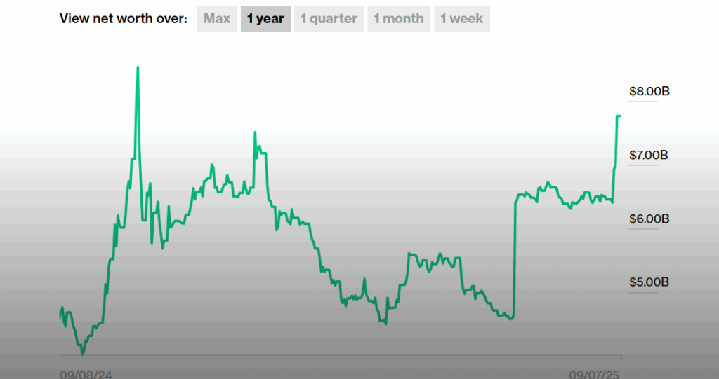 It closed around $7.36. WLFI, a DeFi platform tied to the Trumps, unlocked 24.6 billion tokens for trading on September 1st. The price spiked at first but dropped over 40% shortly after. The family holds about $4 billion in locked WLFI tokens, which aren’t counted in the current estimate.