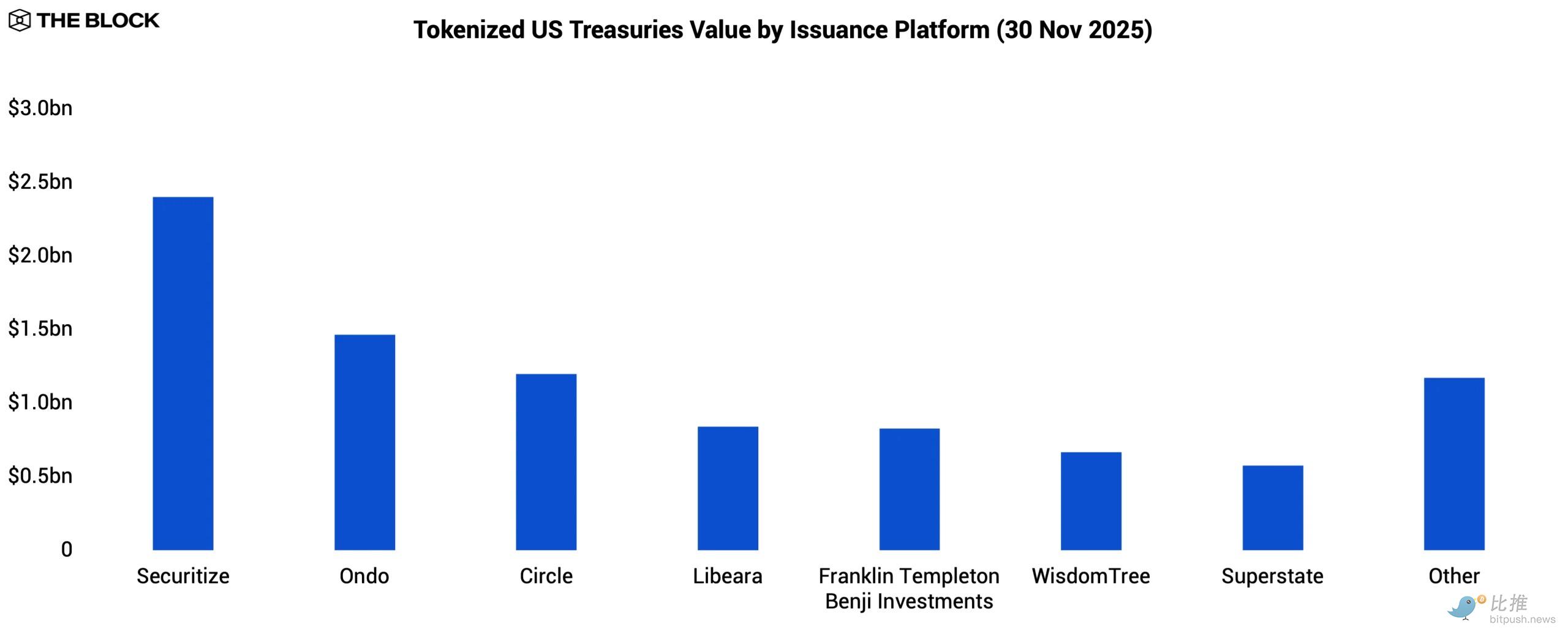 Tokenized US Treasuries remained the largest RWA category, with tokenized value rising from $3.9 billion to $9.2 billion. The star performer was BlackRock's BUIDL issued via Securitize, reaching $2.3 billion in Assets Under Management (AUM). BlackRock's presence provided a credibility anchor for institutions previously hesitant to adopt tokenized fixed-income products.