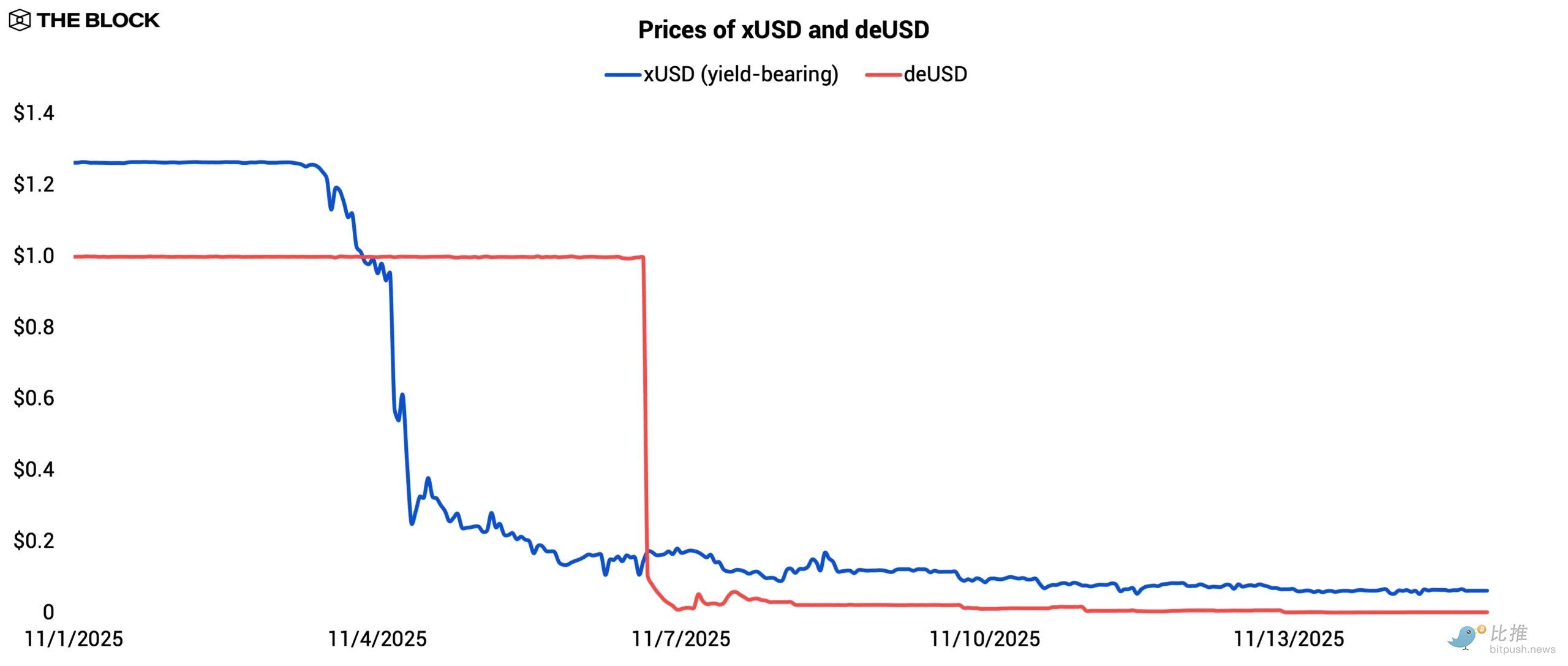 Stream allowed users to deposit assets in exchange for xUSD, a yield-bearing stablecoin purportedly backed by market-neutral strategies run by external fund managers. This assumption collapsed when one of the designated fund managers disclosed a $93 million loss executing a strategy that supposedly had minimal directional exposure, leaving xUSD severely undercollateralized. Stream immediately halted deposits and redemptions, and as confidence evaporated and liquidity fled secondary markets, xUSD began to depeg.