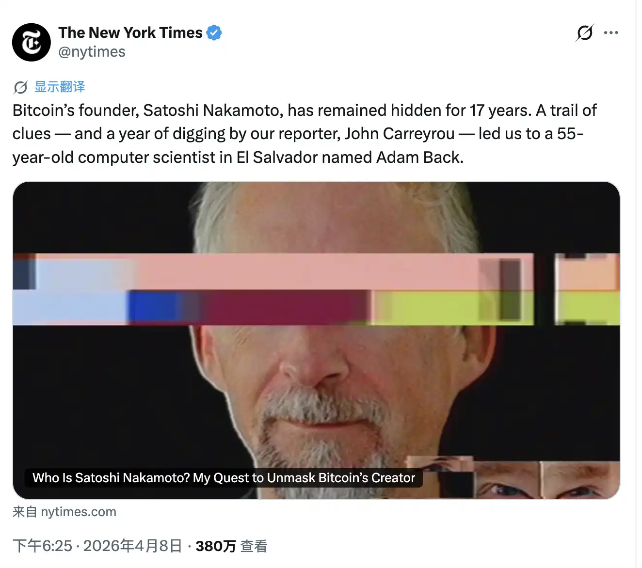 Recently, The New York Times published a lengthy investigation, conducting multi-faceted comparisons based on writing style, technical approach, and historical context, identifying Blockstream CEO Adam Back as the most compelling candidate for Satoshi Nakamoto. However, this claim was swiftly and explicitly denied by Back himself, and the related arguments have been widely questioned within the industry as unconvincing.