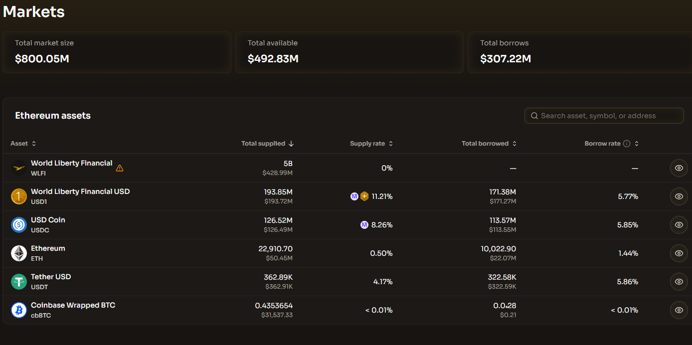 Against this collateral, the project borrowed over $75 million of USDC. The result? This drove WLFI Markets’ USDC lending rates to a lucrative 13.5%, but also drained the liquidity pool.