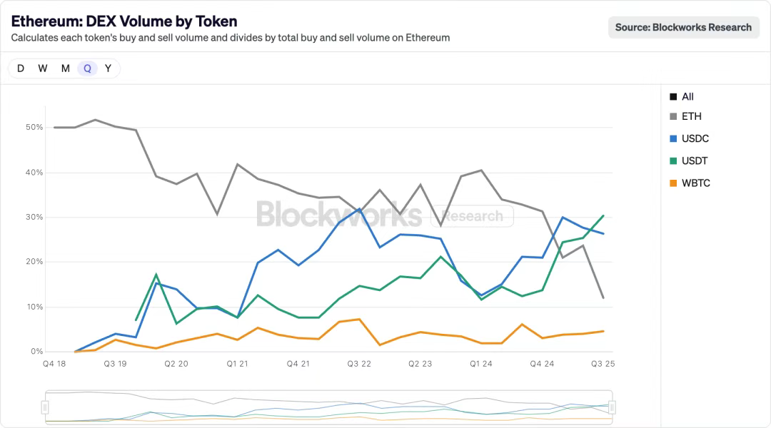 Within the Ethereum ecosystem, there are signs of stablecoins gradually replacing ETH. As liquidity migrates on-chain with Perp DEX, USDT/USDC is also profoundly changing the old格局 (landscape). The story of stablecoins replacing ETH/BTC as the benchmark asset within CEXs will replay on-chain.