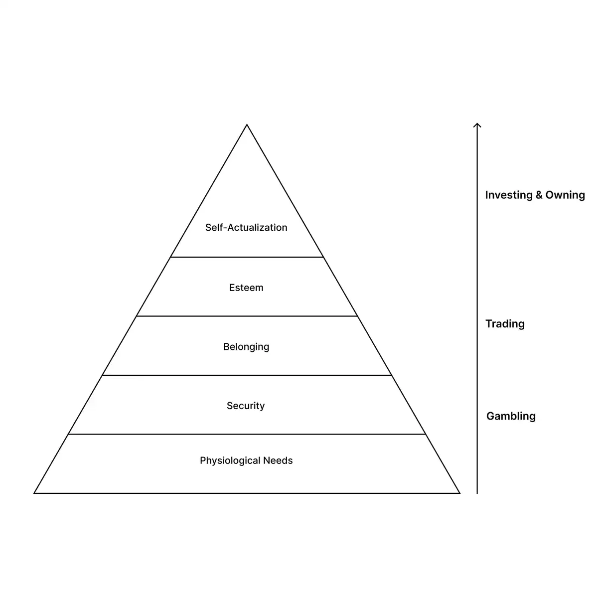 Investing is closer to self-actualization and purpose at the top. Owning a home is the American Dream; investing in a company is expressing belief in its future. But it's hard to achieve this conviction if your attention is still focused on lower-level needs.