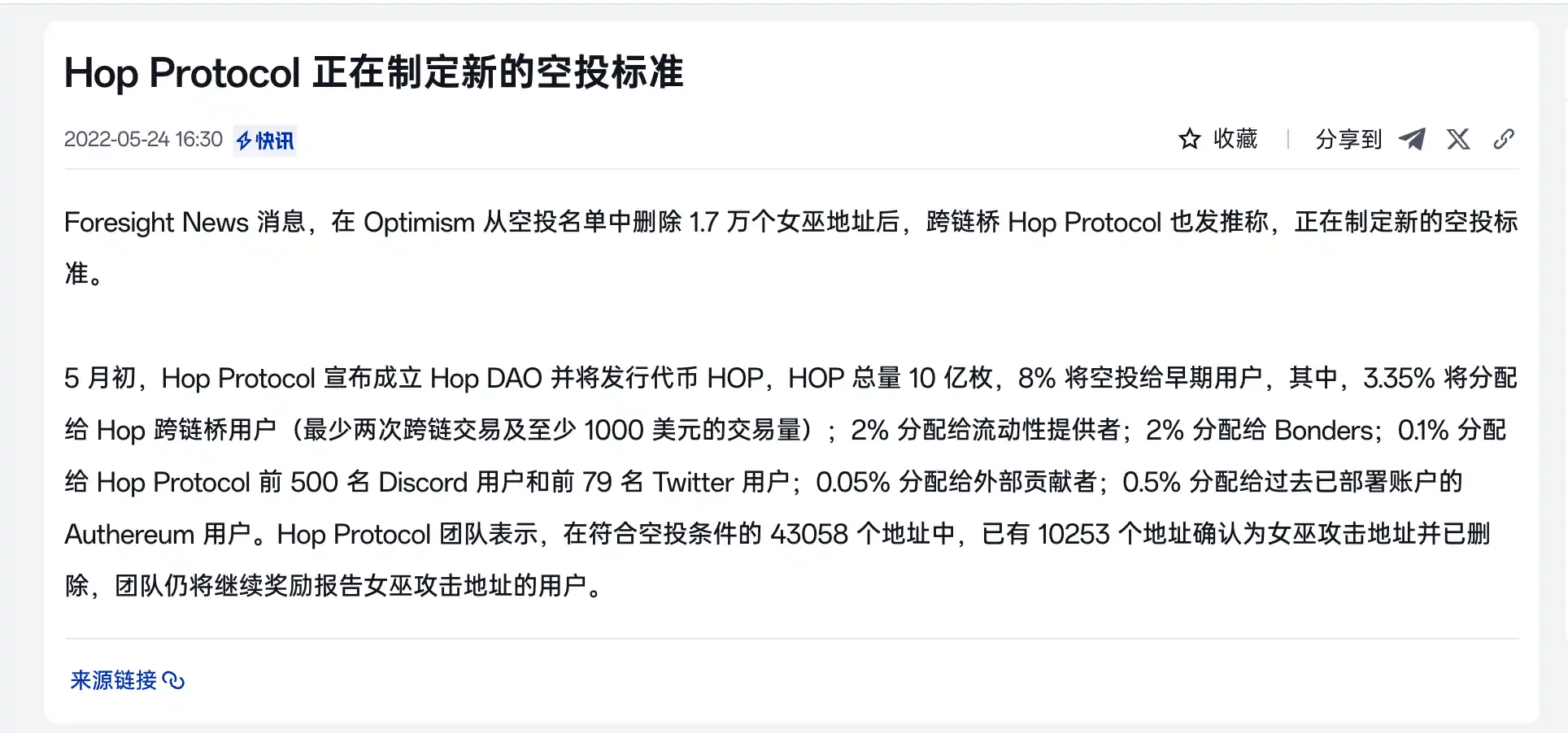 ●Far-reaching Impact: After HOP, checking for Sybils became "politically correct" for all token distribution projects. On-chain interaction shifted from "experiencing decentralized products" to an extremely draining cat-and-mouse game. While combating Sybils is necessary, completely offloading the审查 responsibility (review responsibility) to the community, even encouraging mutual harm, severely damaged the community ecosystem.