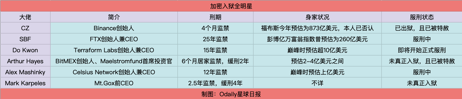 Odaily Note: Representative cryptocurrency figures sentenced in recent years.