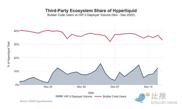 Builder Codes have already won on distribution; by mid-December, about one-third of users were trading through third-party frontends rather than the native UI.