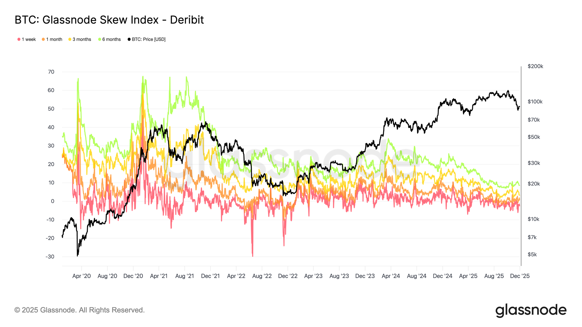 In other words, the fear was mainly short-term, and longer-dated options continued to lean towards upside scenarios, implying that many participants expect better prices further out on the horizon.