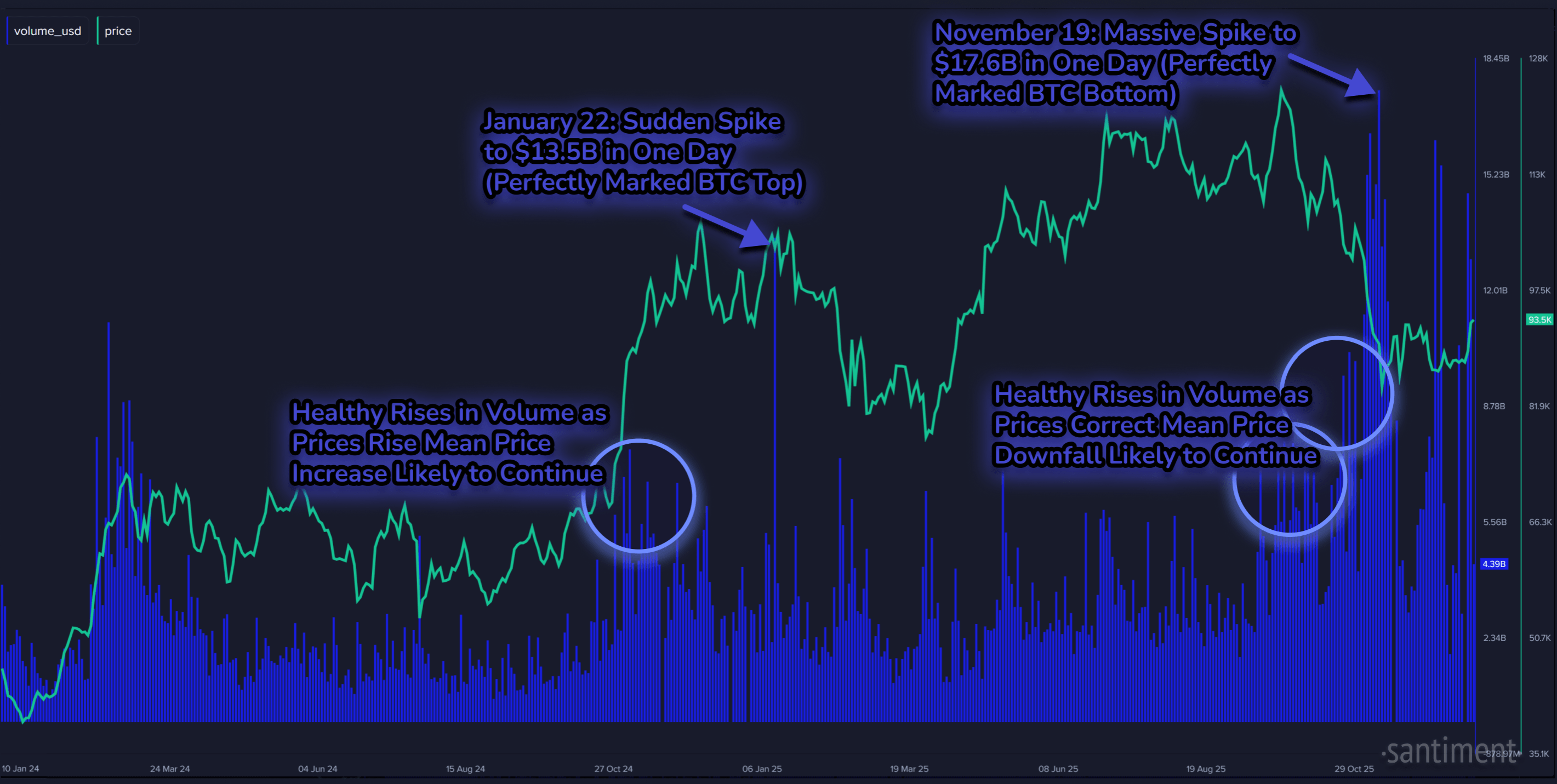 As the analytics firm has highlighted in the chart, Bitcoin has seen two types of surges in the ETF volume: a healthy, sustained rise that supports price moves, and sudden spikes that mark local reversals.