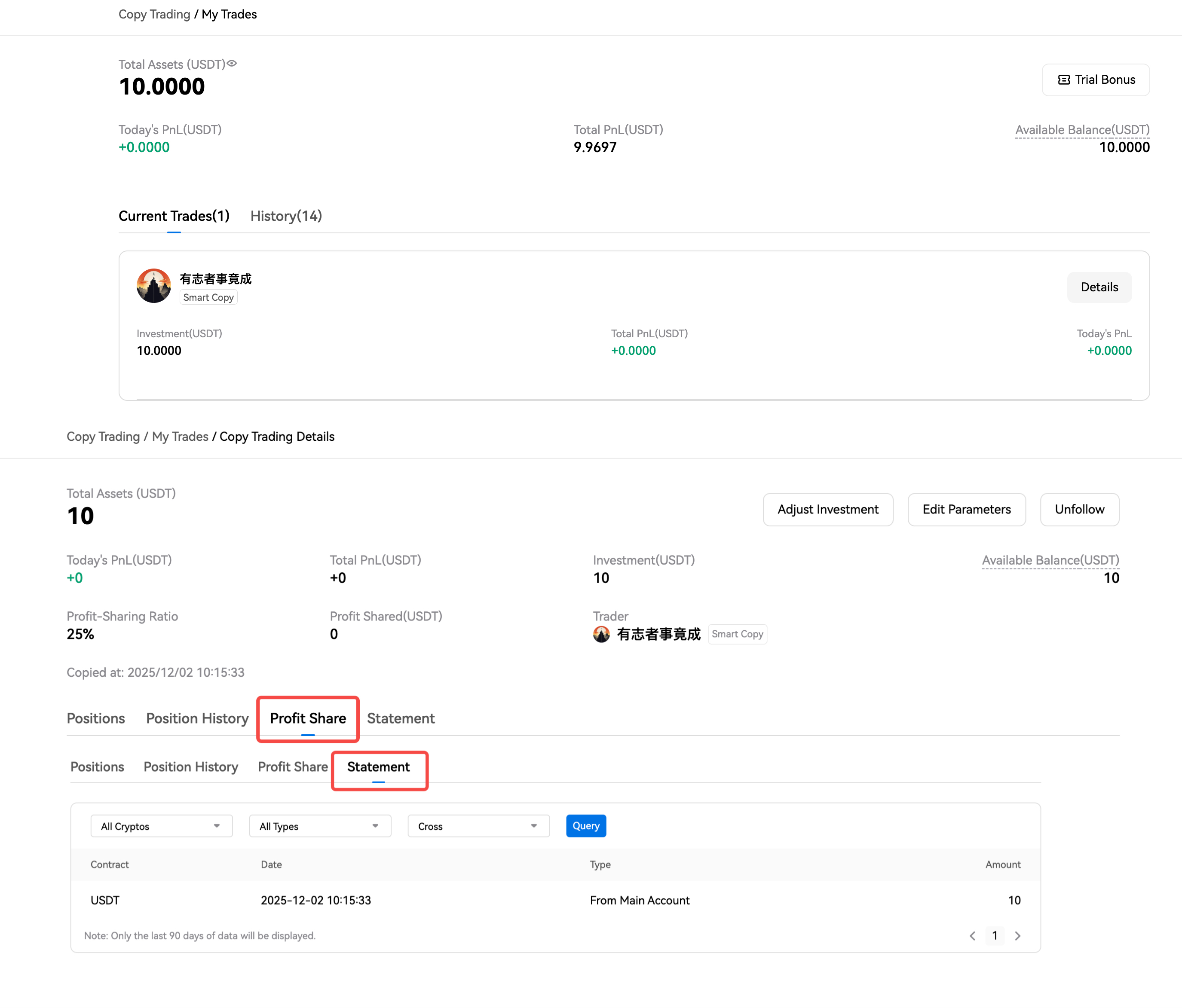 For detailed profit-sharing rules, please refer to the announcement HTX Futures Copy Trading Profit Sharing Rules.