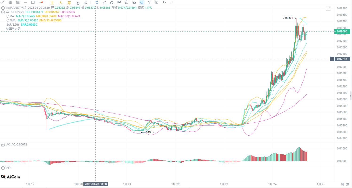 KAIA 异动拉升 KAIA/USDT 24 小时涨幅超 35%,现价 0.0809 美元