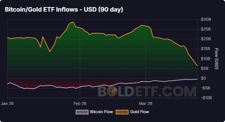 BTC vs. oro: las entradas de ETF divergen