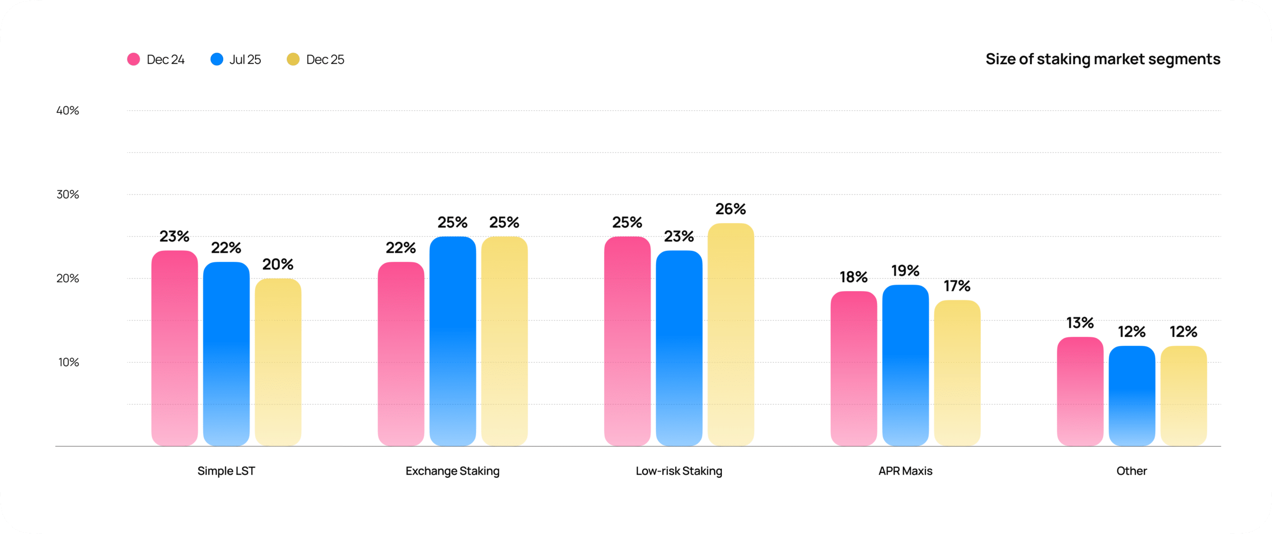 La rotación de capital desde LST Simple hacia el staking en exchanges e institucional, y la intensificación de la competencia, redujeron el tamaño del segmento donde Lido mantiene el liderazgo de categoría.