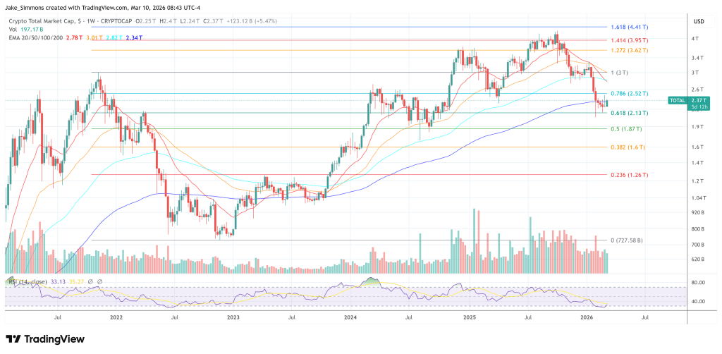 Al cierre de esta edición, la capitalización total del mercado de criptomonedas se situaba en $2.37 billones (trillones en escala corta).