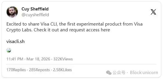 El mismo día del lanzamiento de Tempo, la división de criptomonedas de Visa presentó una herramienta de interfaz de línea de comandos para que los agentes de IA paguen a través del terminal, sin claves API, sin cuentas y sin autorización humana. Visa lo llama "comercio de línea de comandos": máquinas que realizan sin intervención.