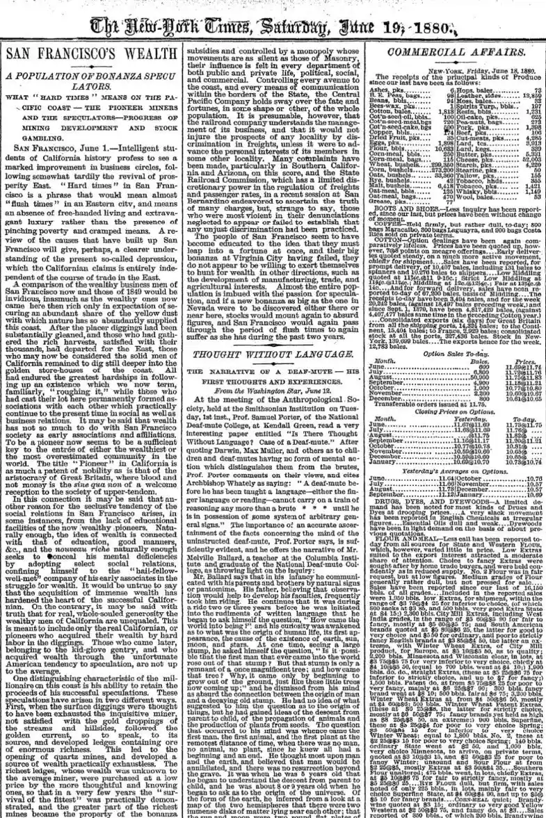 El artículo fue escrito el 1 de junio de 1880 en San Francisco, y no se publicó en The New York Times hasta el 19 de junio.