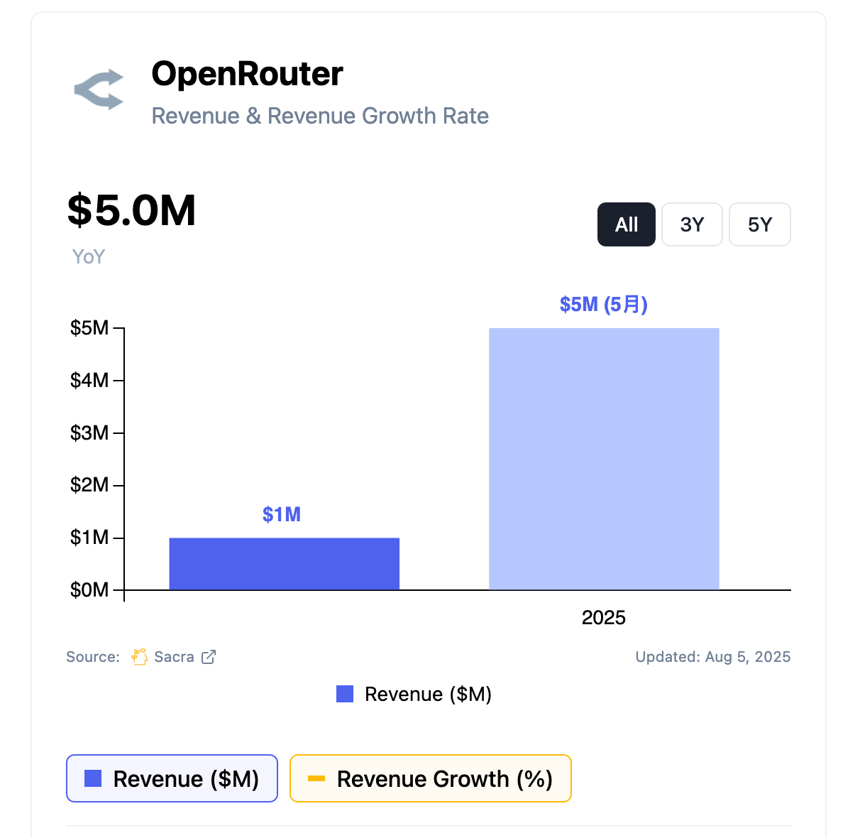 En octubre de 2024, el dinero que pasaba mensualmente por OpenRouter era de 800,000 dólares. Para mayo de 2025, esa cifra se convirtió en 8 millones de dólares.