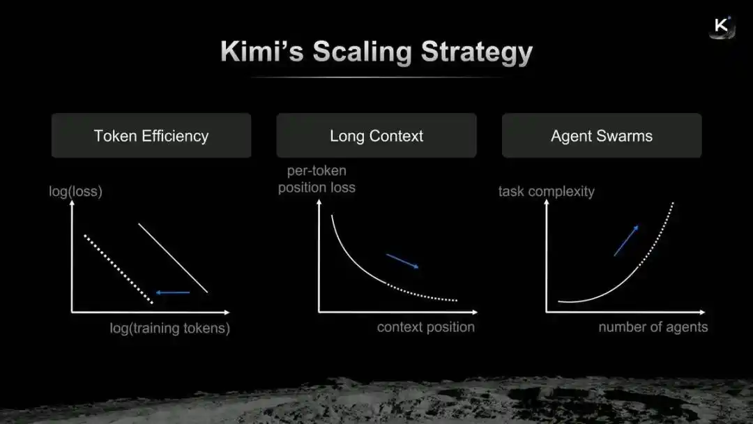 Yang Zhilin cree que la lógica de evolución de Kimi se resume en la eficiencia de Token, el contexto largo y la “combinación” de clusters de agentes. El recién lanzado Kimi K2.6 puede entenderse como una nueva tarea entregada por Yang Zhilin en esta ruta de Scaling.