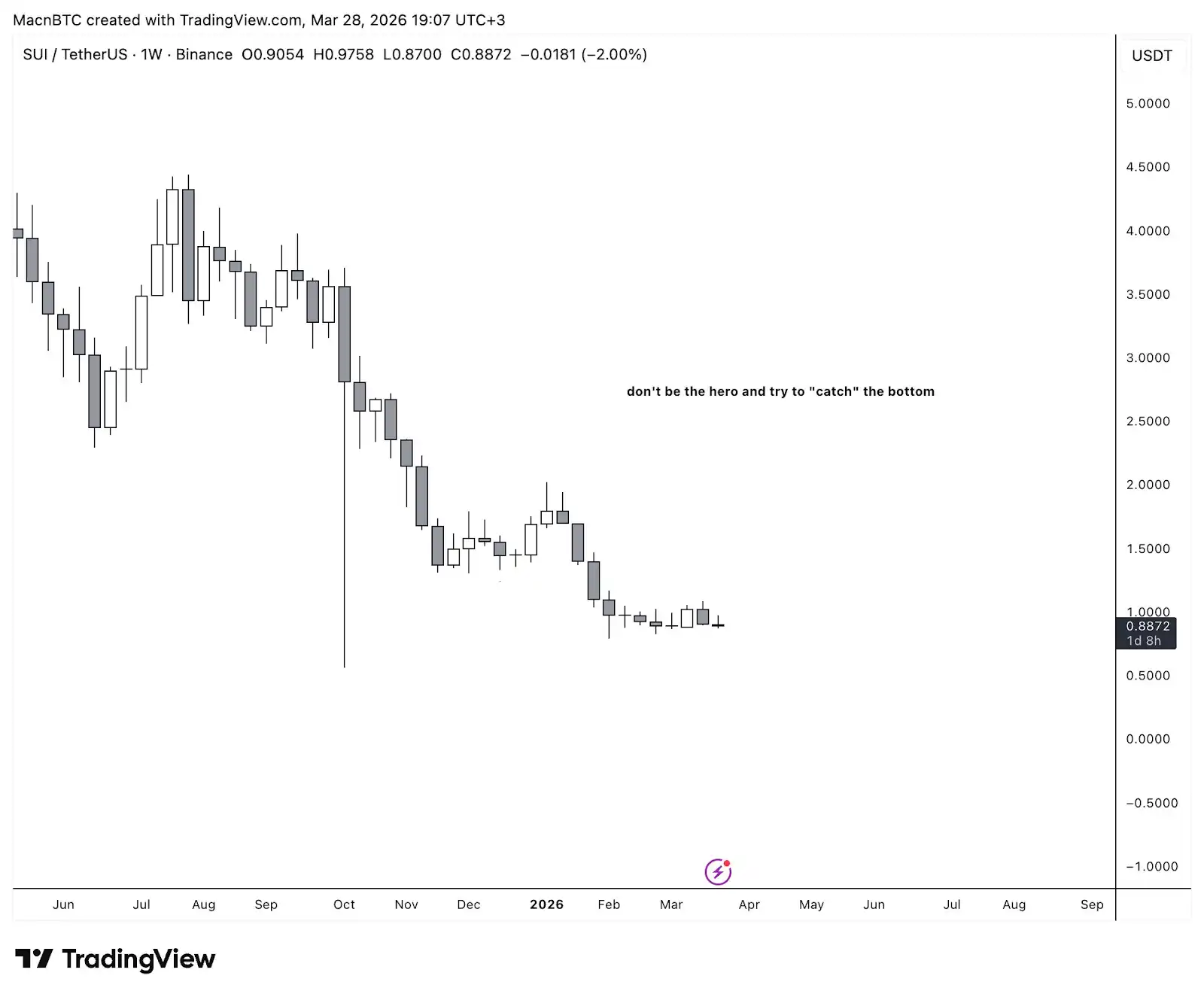 Lección dos: El mercado te engañará una y otra vez. Si la estructura del mercado acaba de volverse alcista y estás preocupado por haber comprado en el techo, solo tengo un consejo: amplía la perspectiva. Cambiar a marcos temporales más altos te ayuda a controlar mejor tus emociones y evitar compras/ventas estúpidas por impulsos emocionales. Innumerables veces me he asustado en el gráfico de 4 horas, luego amplío la perspectiva al gráfico semanal y me doy cuenta de que nada ha cambiado. La estructura sigue intacta, solo estaba mirando demasiado de cerca. Aquí es donde el análisis fundamental resulta útil. Si los fundamentos o la narrativa del mercado respaldan tu análisis técnico, es muy probable que estés realizando una buena operación.