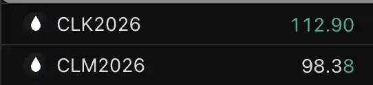 Y durante este rollover de crudo en Trade.xyz, el mercado de futuros de crudo presentaba precisamente esta estructura de precios más altos a corto plazo y más bajos a largo plazo.