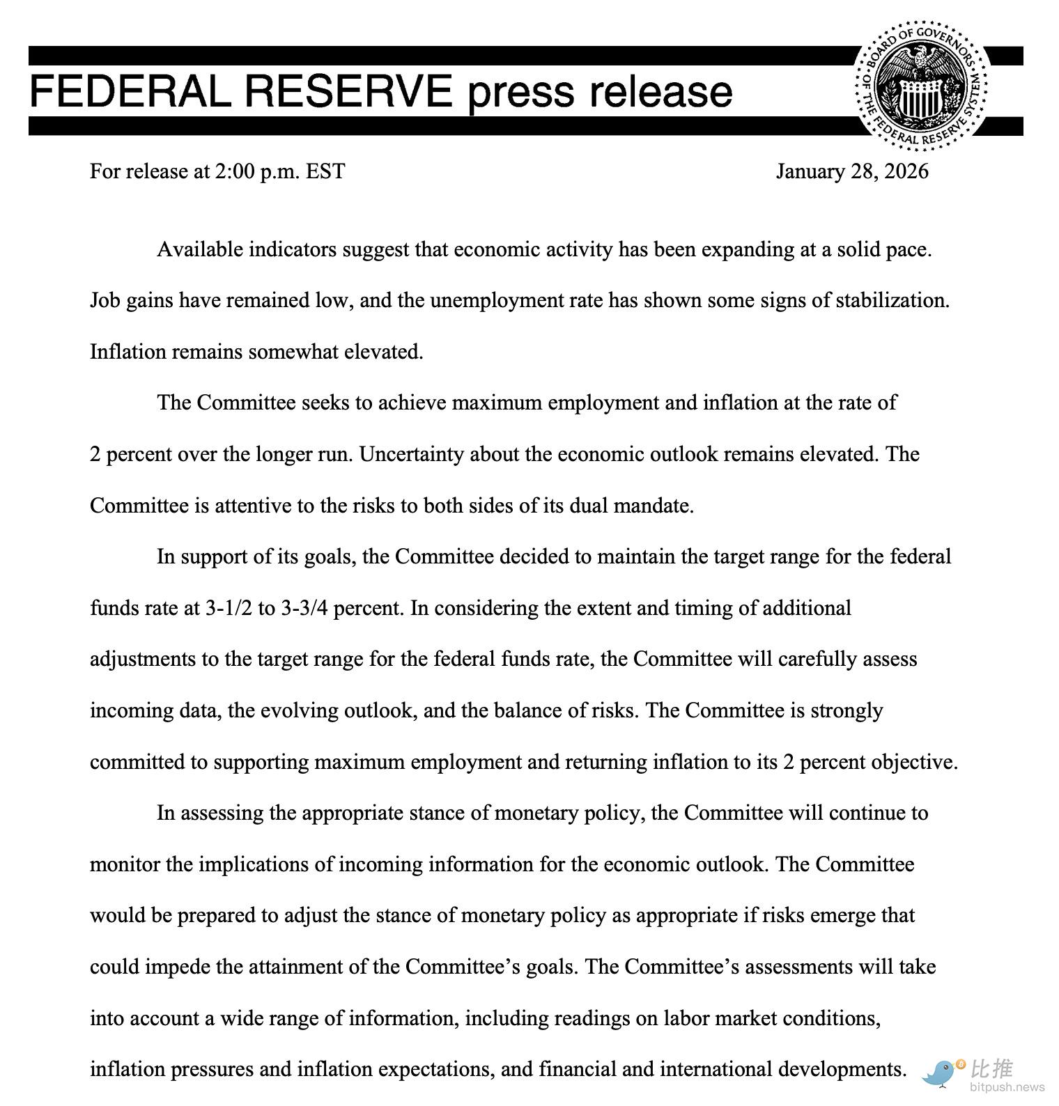 En la madrugada del jueves, hora de Pekín, la Fed anunció que mantendría la tasa de interés de referencia en el rango de 3.5% a 3.75%. Esta decisión, un tanto "plana", cumplió con las expectativas del mercado en más del 97%, pero también reveló pequeñas grietas internas en la política: dos miembros de la Fed votaron en contra, apoyando un recorte adicional de 25 puntos básicos.
