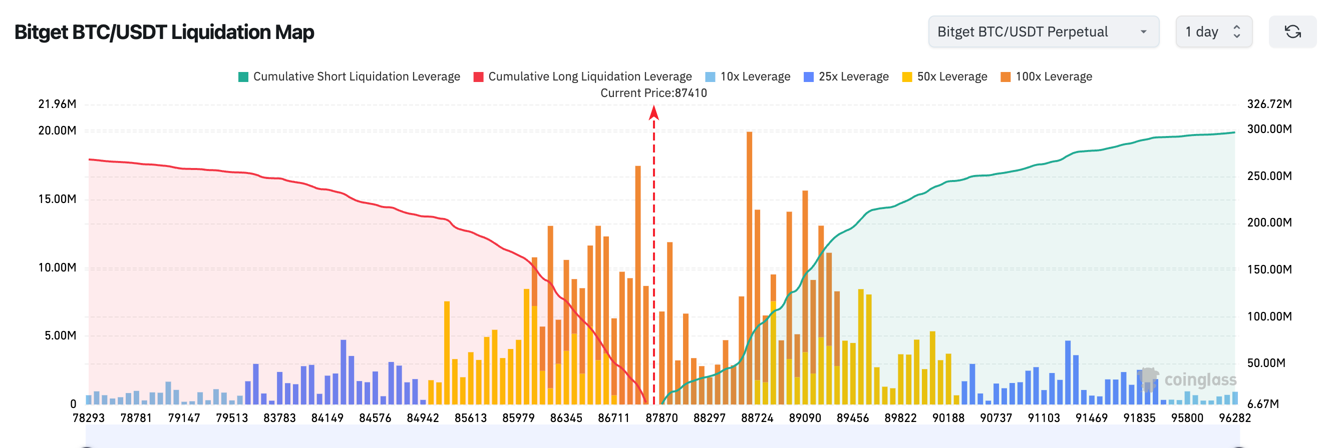 3. El mapa de liquidaciones de Bitget BTC/USDT muestra: El precio actual alrededor de 87,400 se encuentra en una zona núcleo de disputa entre compradores y vendedores. Por encima, en el rango 88,000–90,000, se concentran numerosas órdenes cortas con apalancamiento de 50x–100x. Una ruptura con volumen podría desencadenar fácilmente un efecto de compra por covering de cortos, causando una rápida subida. Por debajo, en la región 86,000–87,000, el apalancamiento de compradores es denso. Si el precio cae por debajo de este rango, podría provocar stops de pérdida concentrados en posiciones largas, haciendo que el mercado caiga rápidamente. En general, presenta una estructura de "zonas de riesgo arriba y abajo, ampliando la volatilidad".