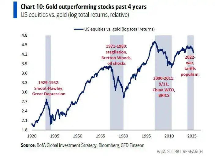 En este escenario, Hartnett recomienda tomar posiciones largas en acciones internacionales, ya que el posicionamiento del excepcionalismo estadounidense se está reequilibrando hacia lo global. Los datos muestran que en la década de 2020, los fondos de acciones estadounidenses recibieron entradas de 1,6 billones de dólares, mientras que los fondos globales solo recibieron 0,4 billones de dólares, un desequilibrio que podría corregirse.