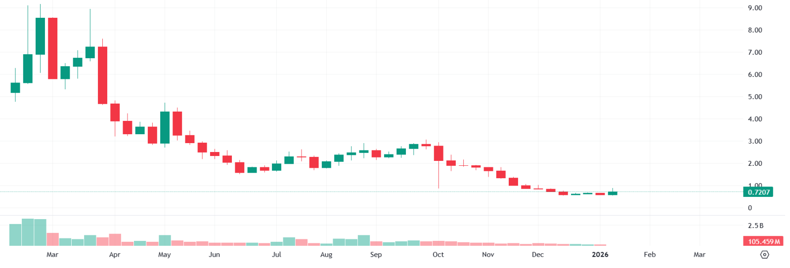 El precio de BERA cayó desde un máximo de 9 dólares hasta los actuales 0.7 dólares, en apenas un año, la llamada token de la cadena pública celestial cayó más de 10 veces.