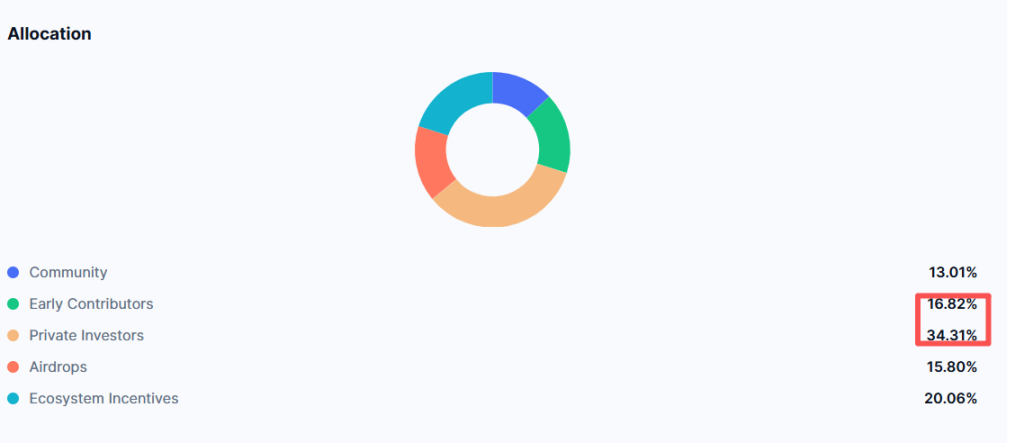 Este colapso se originó en un modelo de baja circulación y alto FDV, que causó una inflación artificial del precio seguida de un rápido derrumbe, y estos problemas tienen su raíz en el mecanismo de distribución de tokens de Berachain. Los contribuyentes tempranos obtuvieron el 16.82% del suministro total, los inversores privados obtuvieron una porción de tokens asombrosamente alta del 34.31%, siendo un típico token de VC. Además, los poseedores de NFT podían obtener tokens por valor de decenas de millones de dólares, mientras que los usuarios de la testnet solo recibían airdrops de 60 dólares, lo que generó controversia por la "brecha de riqueza" y marginó a algunos usuarios leales.