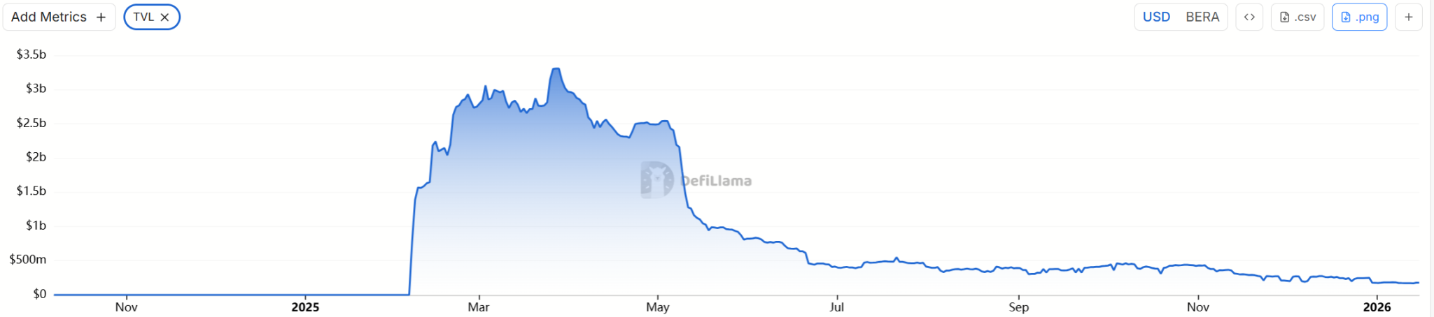 AEl TVL de Berachain alcanzó un máximo de 33 mil millones de dólares, pero actualmente ha caído a 180 millones de dólares.