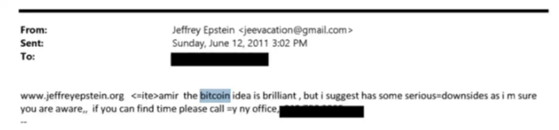 Ya en 2011, Epstein había prestado atención a Bitcoin. En ese año, el volumen total de transacciones de Bitcoin aún no superaba los 100 millones de dólares, y el precio ese año una vez superó los 30 dólares y luego cayó un 90%.