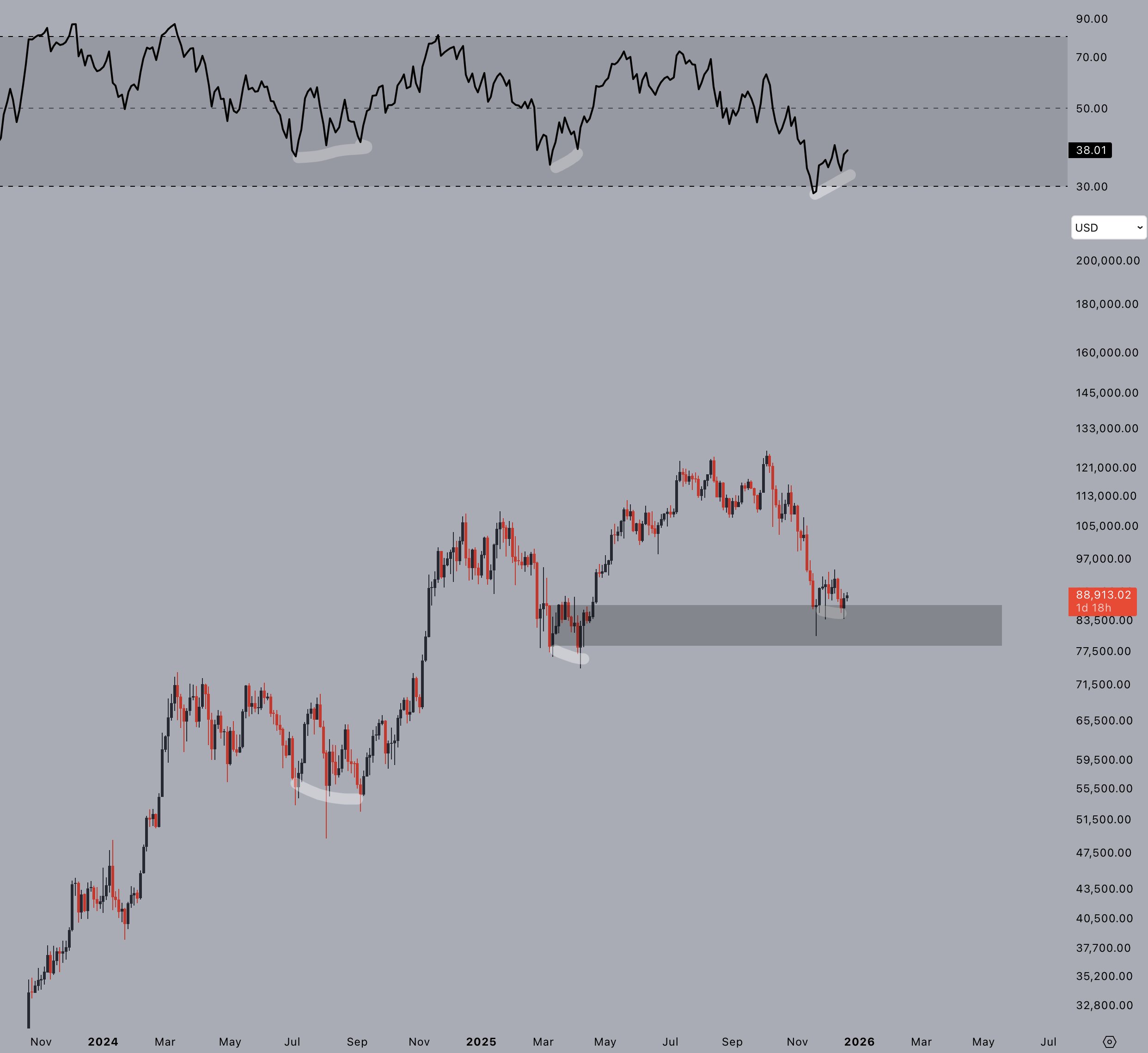 En diciembre, el RSI estocástico semanal de Bitcoin había subido desde niveles de sobreventa, una configuración que históricamente ha aparecido cerca de puntos de inflexión clave, antes de que el precio repuntara, como destacó el trader Jesse en el siguiente gráfico.
