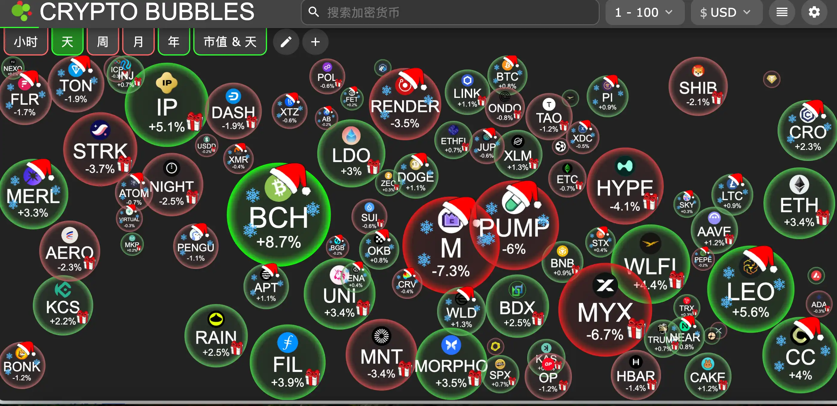 Mayores ganancias hoy entre las top 100 criptomonedas por capitalización de mercado: Bitcoin Cash subió 8.7%, LEO Token subió 5.6%, Story subió 5.1%, World Liberty Financial subió 4.4%, Canton Network subió 4%.