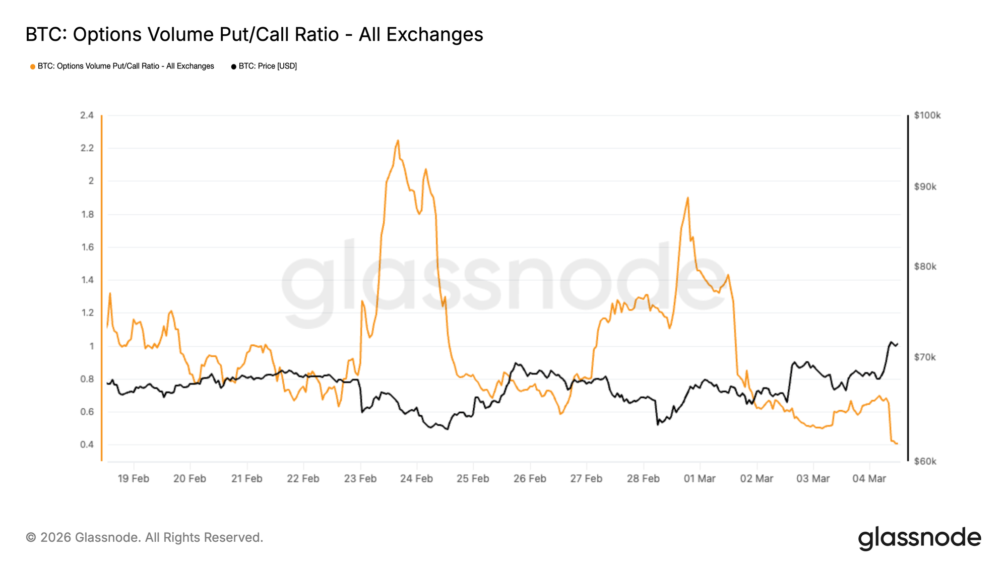 La combinación de una volatilidad en declive y una creciente actividad de calls sugiere un mercado transicionando gradualmente lejos de la cobertura defensiva hacia un posicionamiento alcista más oportunista.