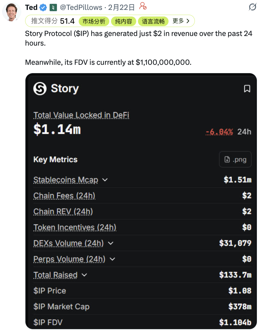 El producto tiene ingresos, pero el precio del token no los absorbe: el dinero ganado por el protocolo se queda en el equipo / empresa / canal, el token en sí solo se encarga de la "gobernanza" o la "representación narrativa", falta el retorno de valor, a largo plazo solo puede fijar el precio por sentimiento.