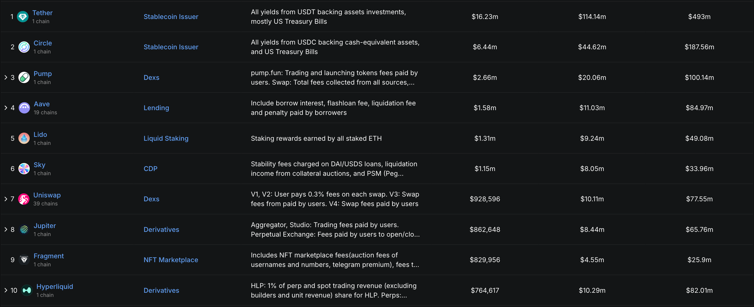 Tomando como referencia las estadísticas de DeFiLlama, en las últimas 24 horas solo 6 protocolos tuvieron ingresos superiores a 1 millón de dólares, y en los últimos 30 días solo 49 protocolos superaron los 5 millones de dólares en ingresos. Esto significa que, solo con los ingresos del protocolo, a menudo es difícil sostener una valoración demasiado alta, y mucho menos absorber el impacto de la oferta de tokens en los ciclos de desbloqueo posteriores.