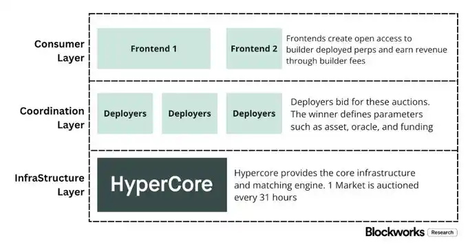 En las finanzas tradicionales, el exchange suele controlar la aprobación de listados y la creación de productos. HIP-3 externaliza esta función: los desarrolladores pueden desplegar contratos perpetuos que heredan la capacidad del motor de matching y la API de HyperCore, mientras que la definición y operación del mercado específico es responsabilidad del desplegador.