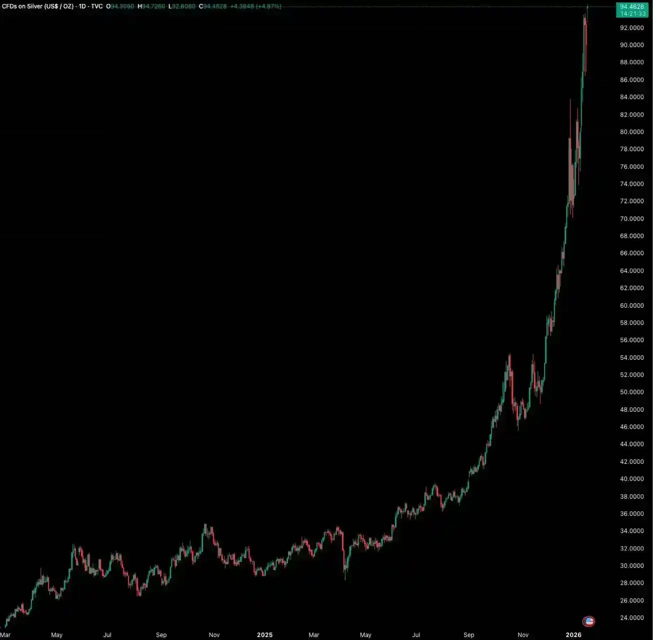 2025 年整年,黄金涨超 60%,白银飙升 210.9%,美股罗素 2000 指数上涨 12.8%。而比特币,在短暂新高后,年线收阴。