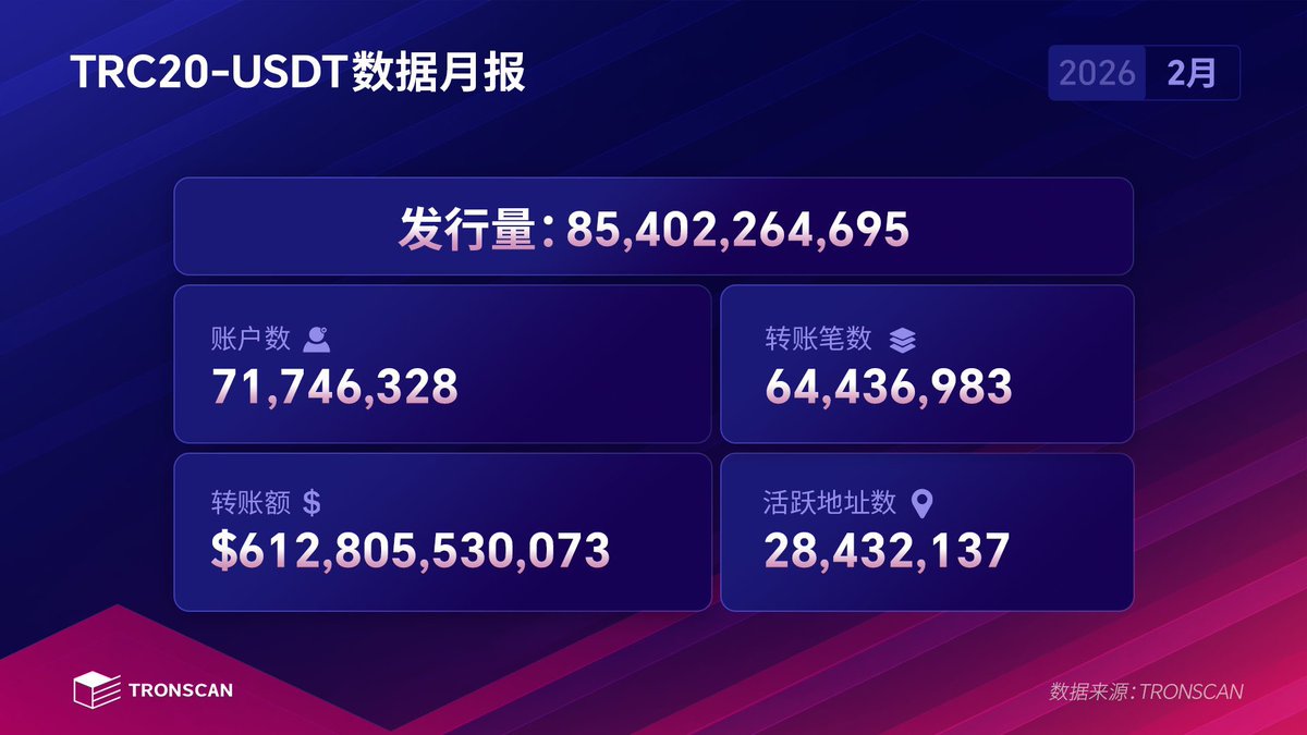 TRC20-USDT 2月数据月报重磅出炉!