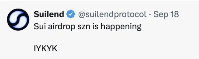 Sui 生态借贷协议 Suilend 更是发推称:「Sui 空投季正在发生,懂的都懂。」其他项目是否会空投还是未知数,Suilend 却已基本明牌,由 Suilend 入局正爆发的 Sui 生态,或许是不错的切入点。