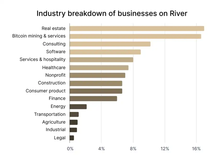 These are mostly small and medium-sized companies that do not publicly disclose their Bitcoin strategies. River serves over 3,000 businesses across various industries and has witnessed the most rapid adoption growth among small, private companies.